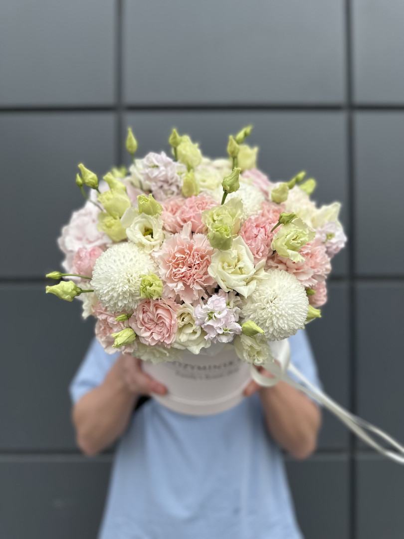 Наши букеты включают хризантемы, символизирующие долголетие и счастье, нежные тюльпаны и пионовидные розы, сочетающие в себе изысканность и элегантность. Эустомы, гортензии и гвоздики добавят особый шарм и индивидуальность вашему подарку.